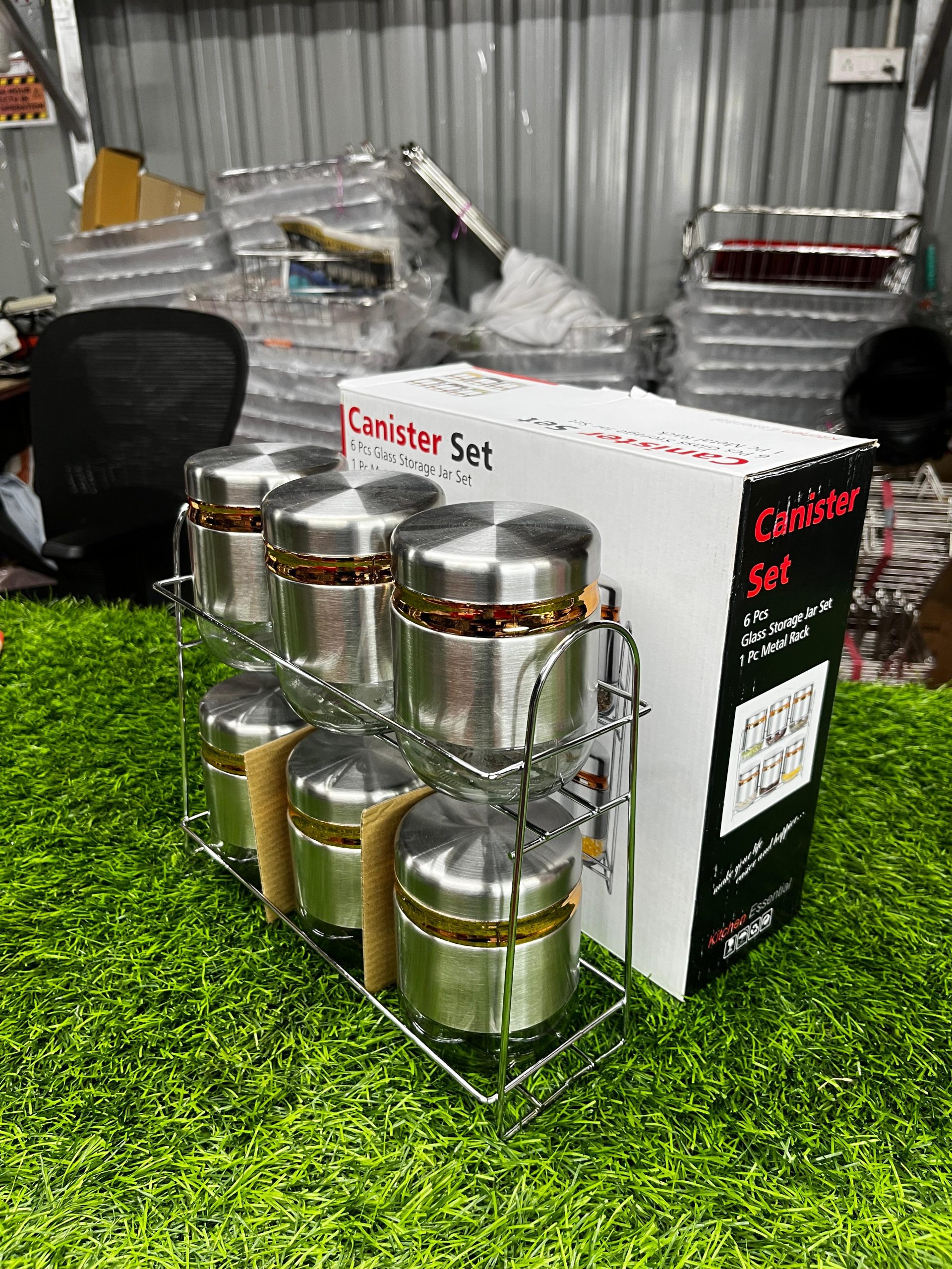 - Stinless Steel Stand, with Glass material Steel Coated jars.