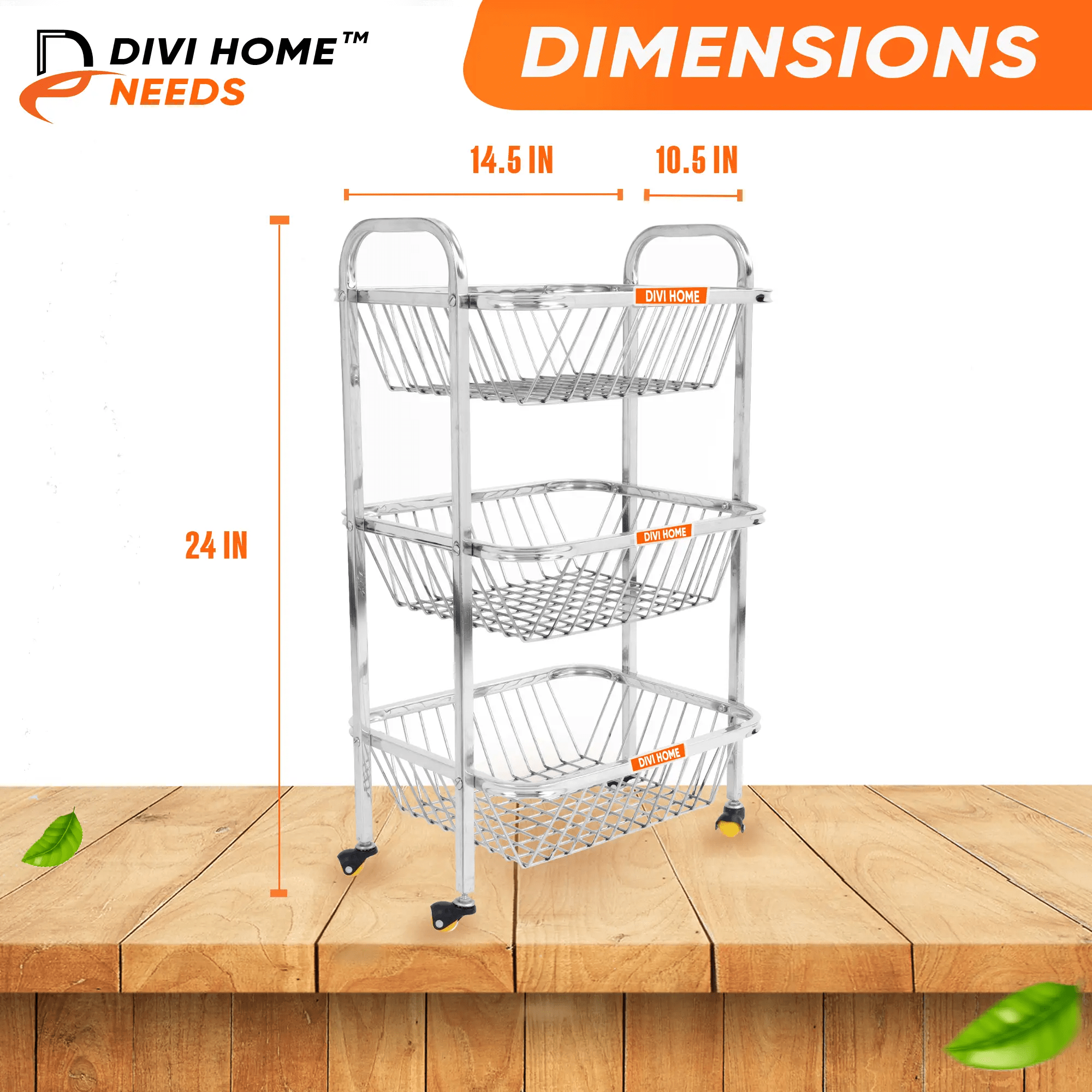 - Divi Home Needs This 3 tier rolling, storage cart can be used everywhere; The compact size kitchen rolling cart and 360 rolling wheel design make it a handy helper throughout your home; The compact size offers generous storage for kitchen, office, bathroom, bedroom, garage, utility rooms, craft room, pantry, closets, entryway?etc. This versatile 3 tier rolling cart provide large room for storage and organizing. You can easily use this storage rolling cart as a pantry cart, kitchen cart, craft cart, nursing cart, garage utility cart and more. The kitchen rolling cart will make your life more convenient.