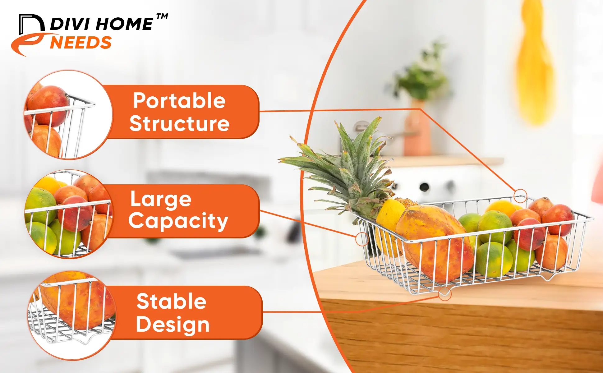 - Divi Home Needs Fruit Basket Use For Banana, Apple, Potato, Tomato, Carrots, Chilli, Cucumber, all Vegetable AND All Fruits.